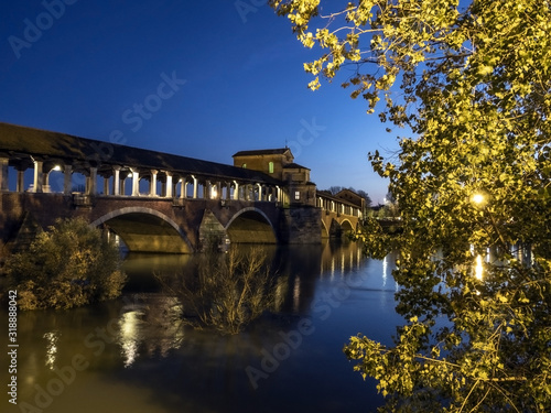 © Albo, Fototapeta premium View of Ponte Vecchio bridge during the flooding of Ticino river in Pavia, Italy