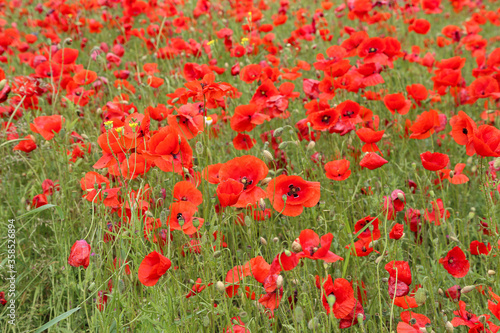 © leomalsam, Fototapeta premium View of poppy filed in summer countryside