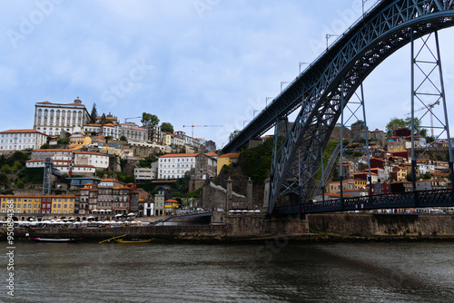 Obraz premium View of Porto city and Douro river and Dom Luis bridge. Porto, Vila Nova de Gaia, Portugal. Cityscape along the river