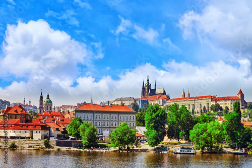 Obraz premium View of Prague Castle from waterfront Vltava river in Prague.Cz