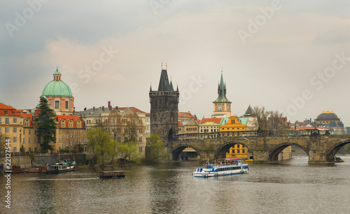 Obraz premium View of Prague with Charles bridge at overcast day