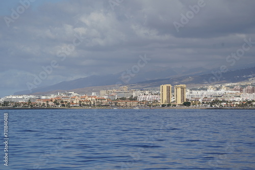 Fototapeta premium View of Puerto de Los Cristianos, seen from the boat. Tenerife island, Spain.