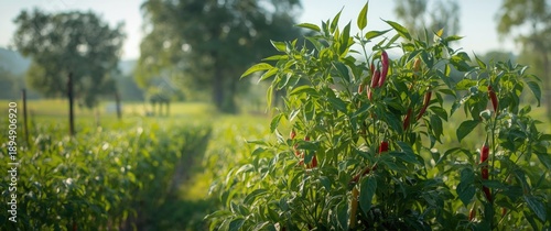 © TheWaterMeloonProjec, Naklejka premium View of recently planted chili crops