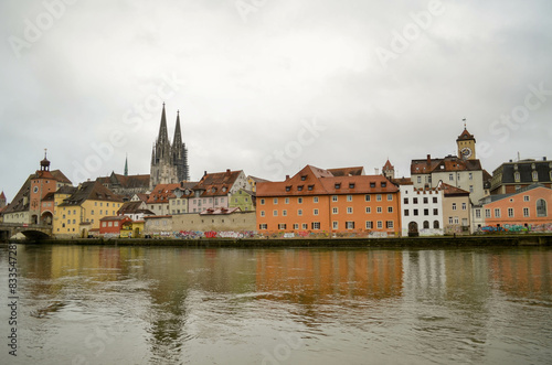 Fototapeta premium View of Regensburg old town from Danube river