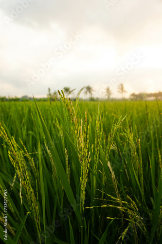 © Handoko, Obraz premium View of rice fields in a village in the morning.