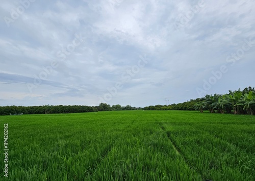 © Green, Fototapeta premium View of rice fields on a sunny afternoon