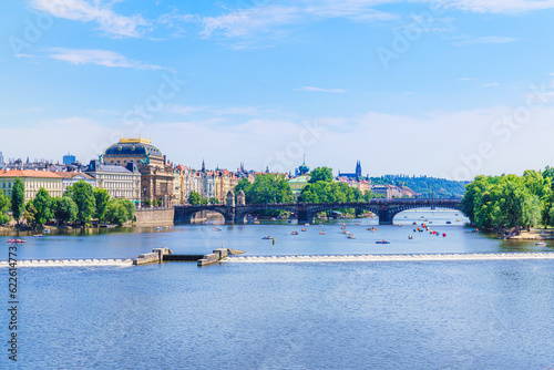 © SerFF79, Obraz premium View of River Vltava in Prague, Czech Republic. People enjoy summertime using recreational boats