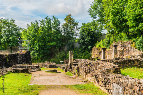 Fototapeta premium View of Roman theatre - ancient structure in Lyon. The Roman theatre built around 15 BC on the hill of Fourviere. Lyon, Rhone, France.