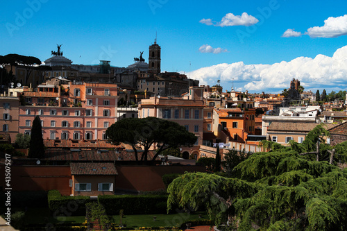 Obraz premium View of Rome, panorama with roofs and trees, in the background the altar of...