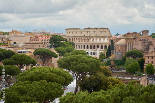 Obraz premium View of roofs of Rome under cloudy sky.