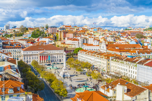 © Balate Dorin, Fototapeta premium View of Rossio Square from Santa Justa Lift viewpoint, Lisbon, Portugal.