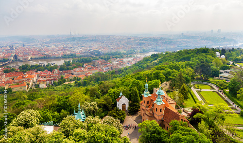 © Leonid Andronov, Fototapeta premium View of Saint Lawrence Cathedral on Petrin Hill in Prague