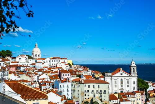 © rayints, Fototapeta premium View of San Vicente de fora Church from Miradouro das Portas do Sol Observation Deck, Largo Porta do Sol, Lisbon.