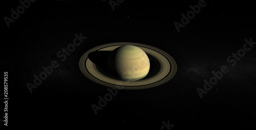 Naklejka premium View of Saturn from its shadow. Cassini satellite Saturn mission . Elements...