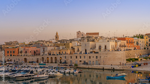 © Libero Monterisi, Obraz premium View of seafront and old town Bisceglie in Puglia on sunset.