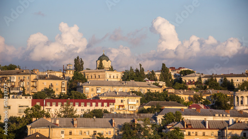 Fototapeta premium View of Sevastopol from a hill at sunset