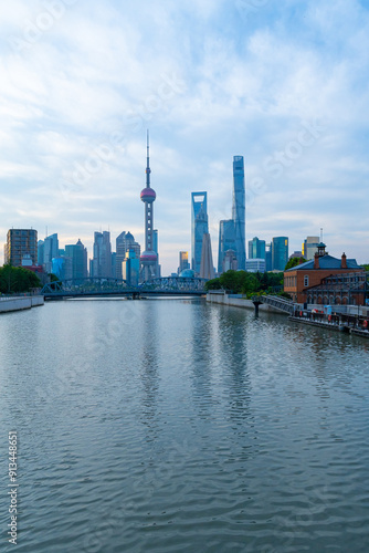 © Shengyi Lu, Obraz premium view of shanghai skyline at sunrise