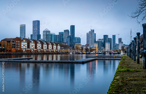 Obraz premium View of skyscrapers in London city as seen from Surrey docks, England
