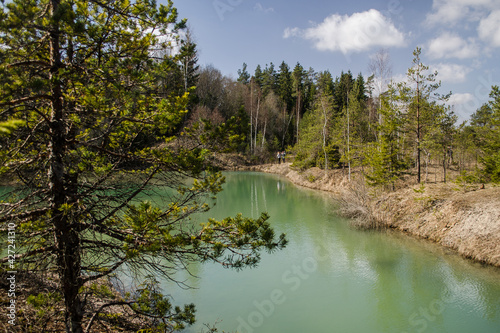 Obraz premium View of small green blue Lackroga lake, Latvia