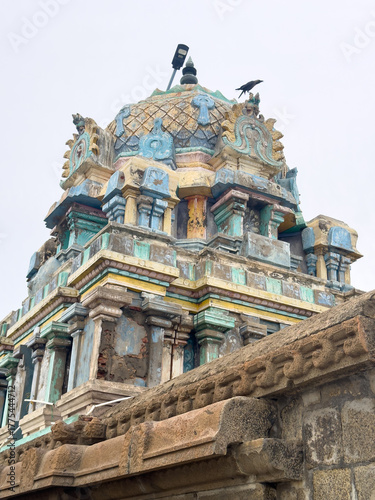Naklejka premium View of Sri Masilanathar Temple tower near Tharangambadi beach in Tamil Nadu,...