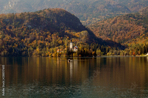 © Nikola, Fototapeta premium View of St. Mary´s Church at the lake Bled