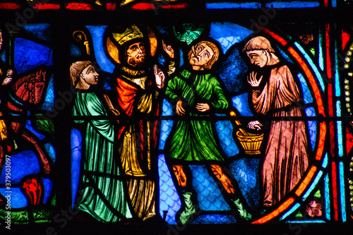 Fototapeta premium View of stained glass windows inside the Basilica of Saint-Remi, a medieval...
