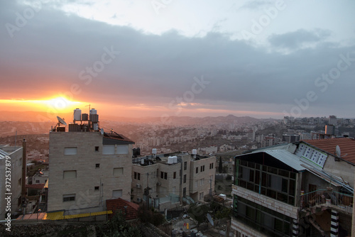 © rparys, Fototapeta premium view of sunrise over the new part of Bethlehem,