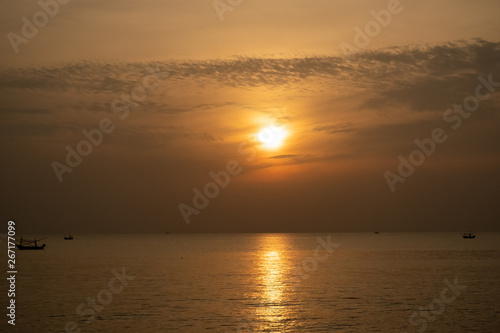 Fototapeta premium view of sunrise over the sea with fisheries boats