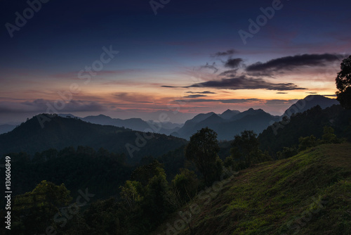Obraz premium View of sunset with mountain in the north of Thailand. Doi Angkhang,...