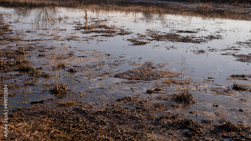 © Nikolay, Fototapeta premium View of swamp. Polluted river.