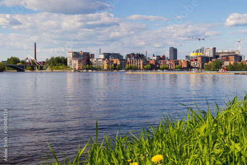 Naklejka premium View of Tampere city over the lake Pyhäjärvi in Finland in the summer.