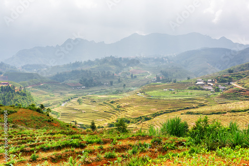 © efired, Naklejka premium View of terraced rice fields at highlands of Sa Pa in Vietnam