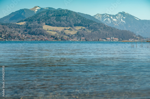 Fototapeta premium View of the alpine lake Tegernsee in Bavaria with mountains in the background