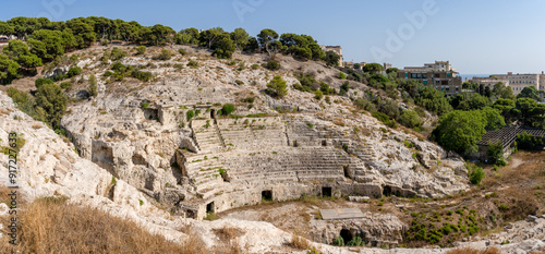 Naklejka premium View of the ancient roman amphitheater of Cagliari, on the island of Sardinia in Italy, built between the 1st and 2nd centuries AD