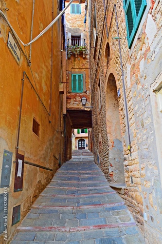 © Simona Bottone, Fototapeta premium view of the ancient Tuscan village of Campiglia Marittima in Livorno, Italy