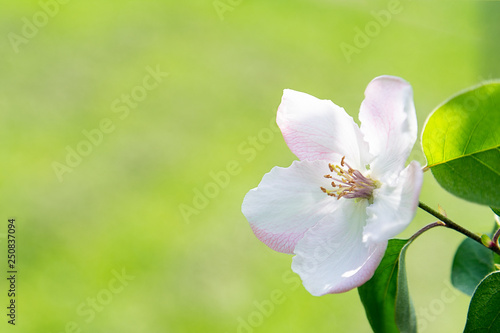 © Chetgal , Obraz premium View of the apple flower on a green background.