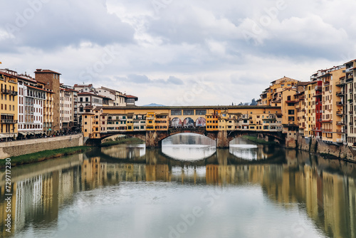 © Andrei Antipov, Obraz premium View of the Arno River in Florence and the famous Ponte Vecchio (Old Bridge).