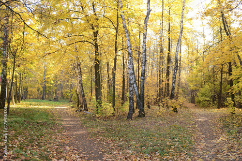 © Svetlana, Obraz premium View of the autumn forest with yellow foliage.