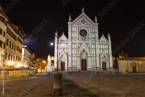 Fototapeta premium View of the Basilica di Santa Croce by night in Florence. There is the tomb...