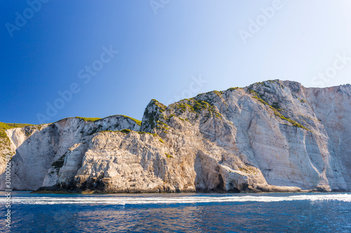 Naklejka premium View of the bay from the sea, near Zakynthos, clear weather.