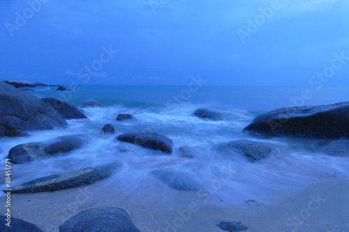 © 88studio, Obraz premium view of the beach, stone and sea at night