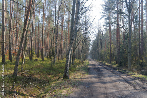 © Karolina, Fototapeta premium view of the birch and pine forest
