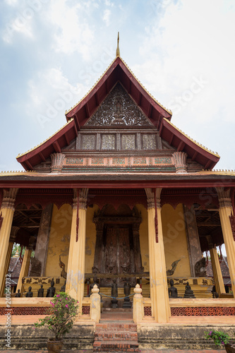 Naklejka premium View of the Buddhist Wat Si Saket (Sisaket) temple in Vientiane, Laos, on a...