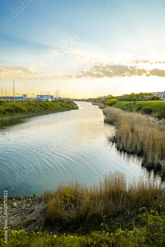 © Elly Miller, Fototapeta premium View of the canal in Calais. Landscape in the evening.
