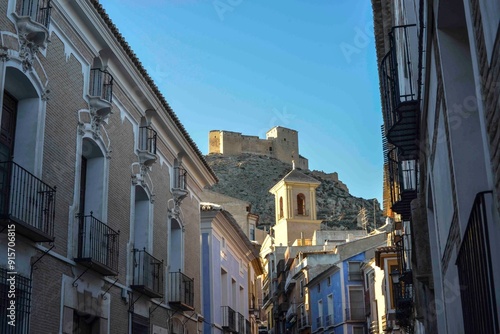 © Angel Garcia, Fototapeta premium View of the castle of Mula, from the street of the cano, a very photogenic place Mula, Murcia, Spain 2022