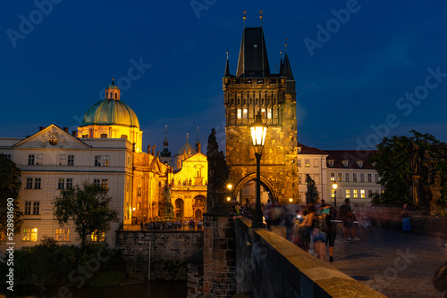 Fototapeta premium View of the Charles Bridge in Prague (Karluv Most - in czech) at sunset,...