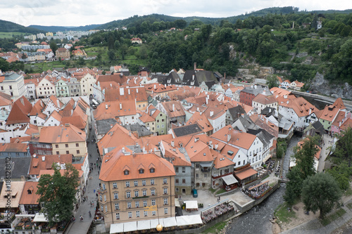 Obraz premium View of the charming medieval town, Cesky Krumlov, from the castle tower....