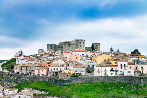 © Vladyslav, Obraz premium View of the city from a height, a city between the mountains, частные houses on a hill