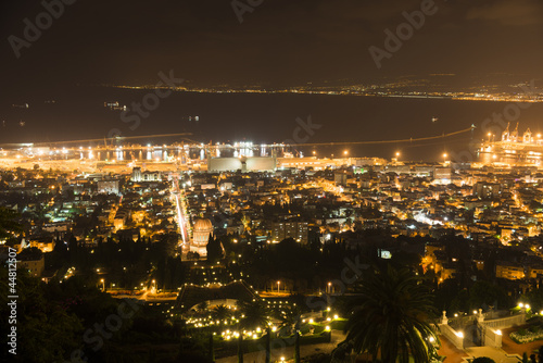 © eranyardeni, Obraz premium view of the city of haifa by night, israel