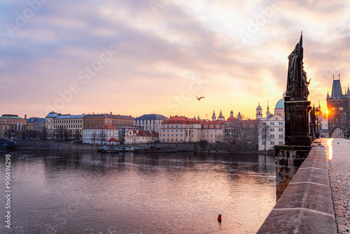 Naklejka premium View of the city of Prague and the Vltava river with Old Town Bridge Tower on...